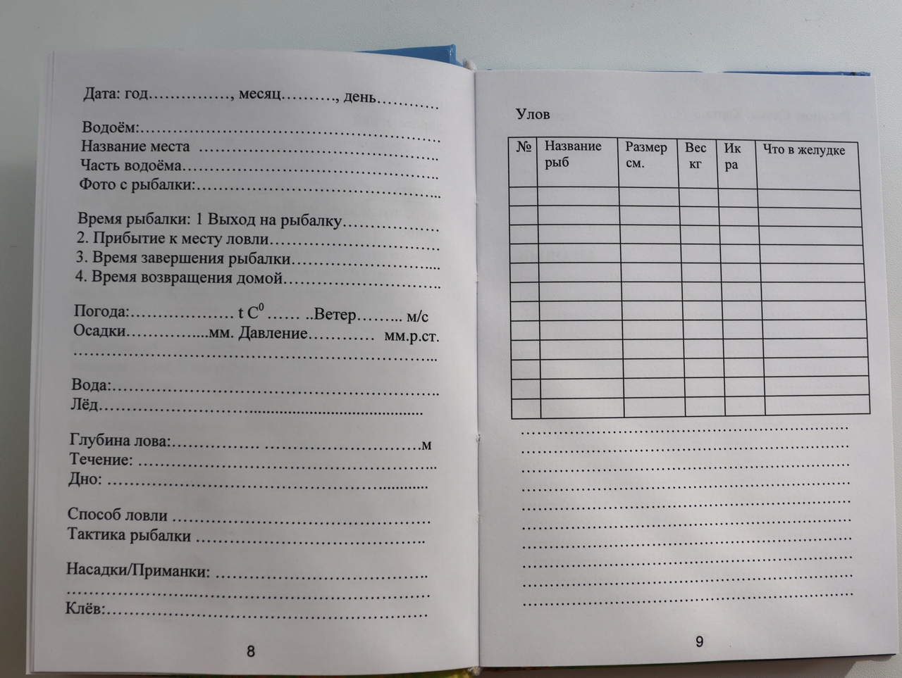 дневник рыболова